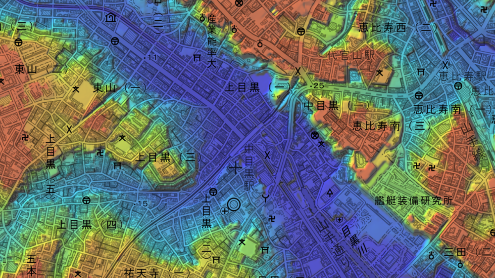中目黒駅の改札を抜け、山手通りに出たとき、周囲がぐるりと小高い丘に囲まれていることに気づくだろうか。 そう、中目黒は標高30メートル級の「目黒台」と「淀橋台」という二つの強固な台地に深く刻み込まれた、標高わずか10メートル前後の「谷底低地(沖積低地)」のどん底に位置しているのだ。約20メートルもの標高差が、この街を巨大なすり鉢の底に閉じ込めている。